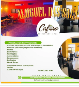- Aluguer de Salas e Alimentação