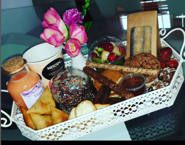 Vintage Violet Arte Arranjos de flores Breakfast na caixa e bandeja Gift hamper Gift com balões