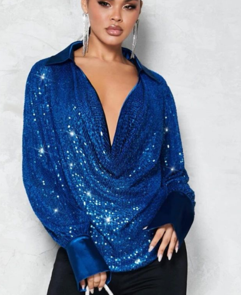 - Blusa gola drapeada Cor Azul Tamanho S 7mil