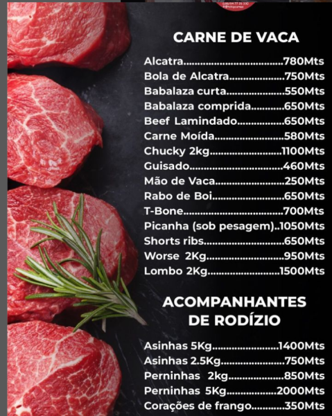 Tchiy Carnes CEO- @alcindaboene Carne fresca, importada e de boa qualidade Garanta o teu churrasco com a melhor carne Contacto: 847726330