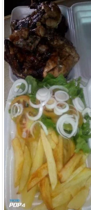 Frango fumado grelhado com batatas fritas e salada 600 mts promoção