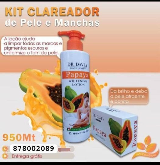 - Kit Clareador de Papaya Loja Slyther Sale's✨☎ Temos para si: Kit Creme Clareador Papaya Sabonete e loção por apenas 950MT.