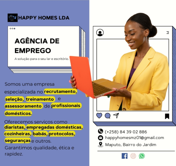 Happy Homes Lda Agência de empregos Happy Homes é a melhor solução para o seu Lar e Empresa, recrutamento especializado e de qualidade.