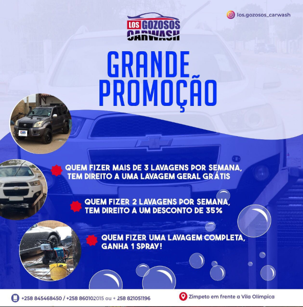 Car Wash Produto/serviço A Los Gozosos CarWash é uma empresa de Lavagem de viaturas, especializada em todo tipo de lavagem.
