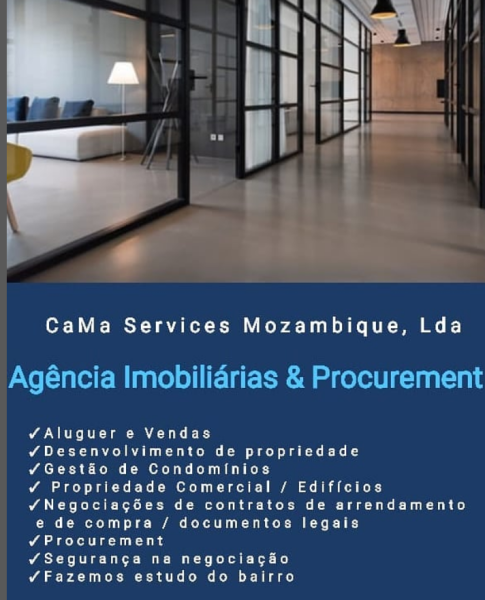 CaMa Services Mozambique, Lda Produto/serviço Agência Imobiliária & Procurement Contactos: +258 860177996 E-mail: mozcamaservices@gmail.com Pemba, Cabo delgado