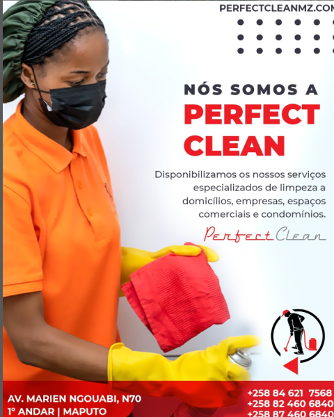 Perfect Clean Serviço de limpeza Perfect Clean tem mais de 18 anos de experiencia na área de limpeza no mercado moçambicano. +258 87 460 6840 +258 84 621 7568
