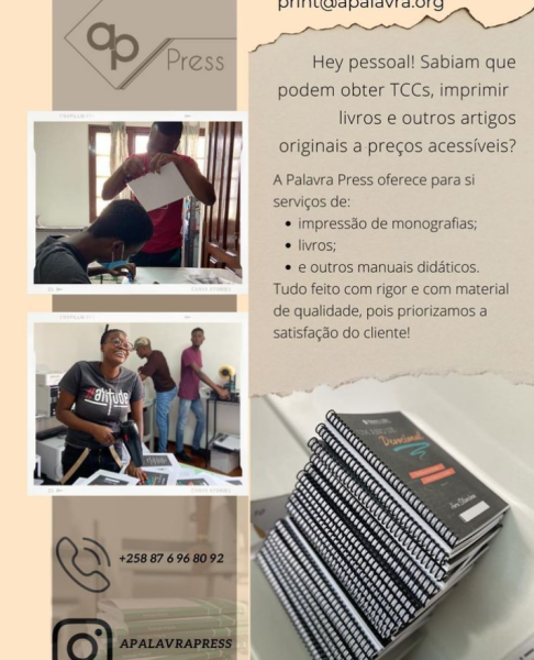 SERVIÇOS _ Somos especializados em: • Impressão de livros - Tamanhos A4, A5 & Pocket Book (A6); • Impressão de Trabalhos TCC - Encadernação; - Laminação de capas